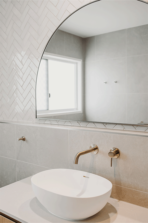 This home embodies the sophistication of the Hamptons design style through the beautiful shaker cabinetry in the kitchen. The timber shelving and vanities help to balance the white tones and provide some warmth and texture. The stunning handmade tiles throughout are a nod to the Coastal design style and are an incredible focal point in the home.
