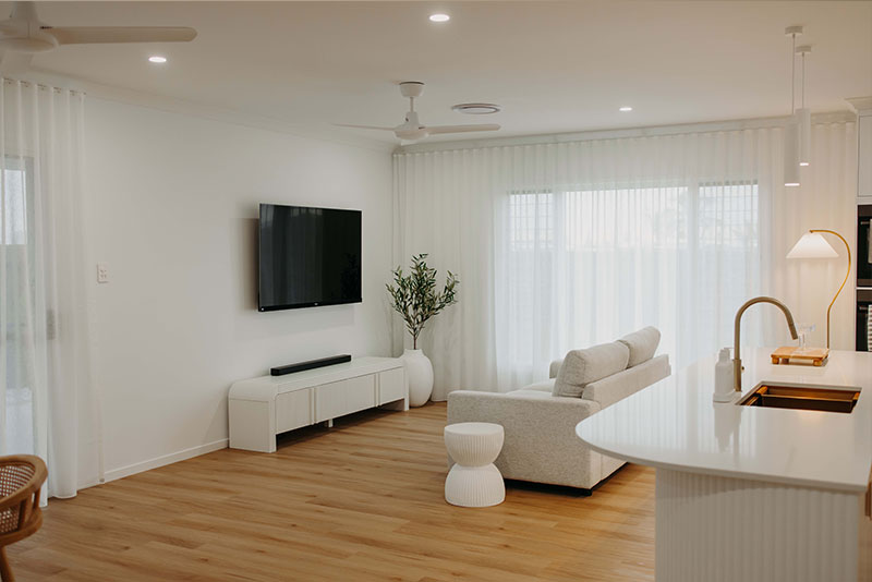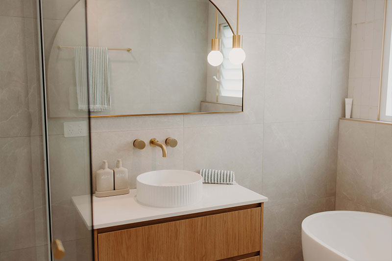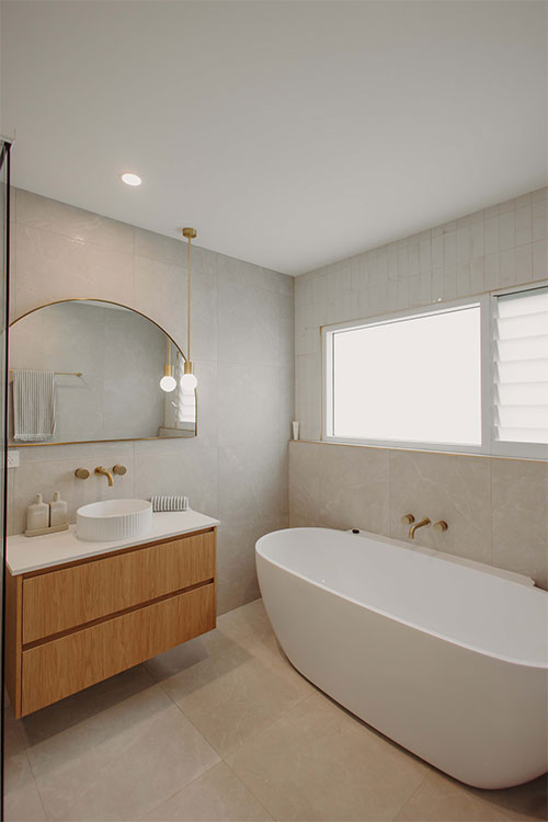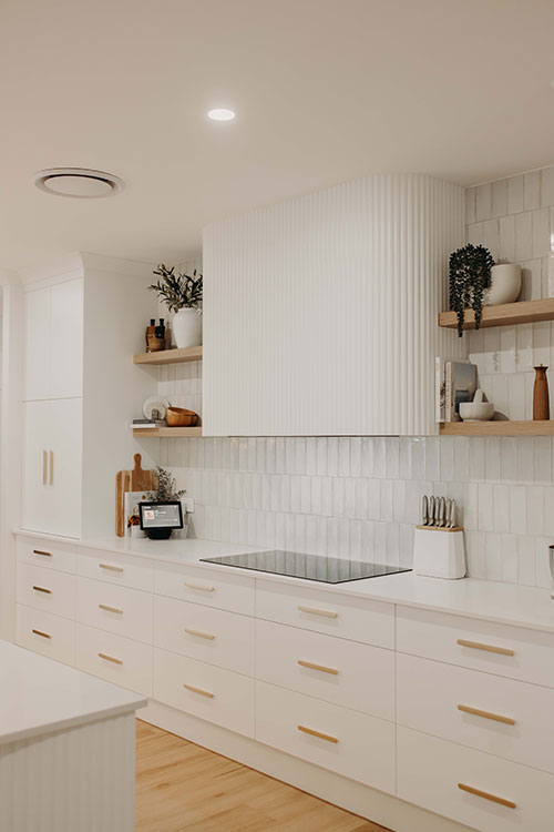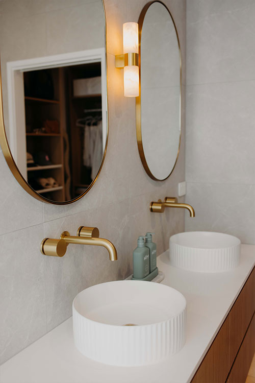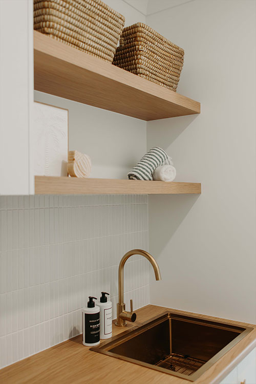 After working tirelessly to make the perfect selections and get the floor plan right, our clients have built the most beautiful home. It's incredibly warming with one tradesman labelling it 'the hug'. There is no shortage of natural light and the colour palette is timeless. The brass tapware adds a touch of luxury, creating a high end feel. We know our clients will be happy here for many years to come.